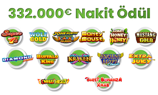 • Turnuva kapsamında sadece Wolf Gold, Mustang Gold, Sweet Bonanza, John Hunter Scarab Queen, Ancient Egypt Classic, Chilli Heat, Extra Juicy, Diamond Strike, Buffalo King, Honey Honey Honey, Release the Kraken, Money Mouse ve Super 7s oyunlarında oynanabilir.